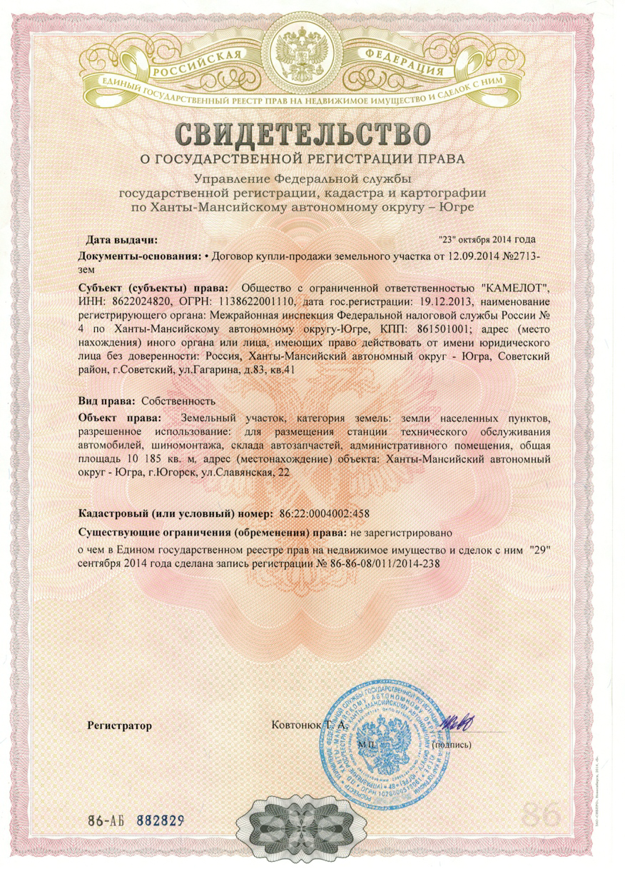 Проект осуществляется на земле, которая находится у нас в собственности по адресу: Югорск ул.Славянская 22